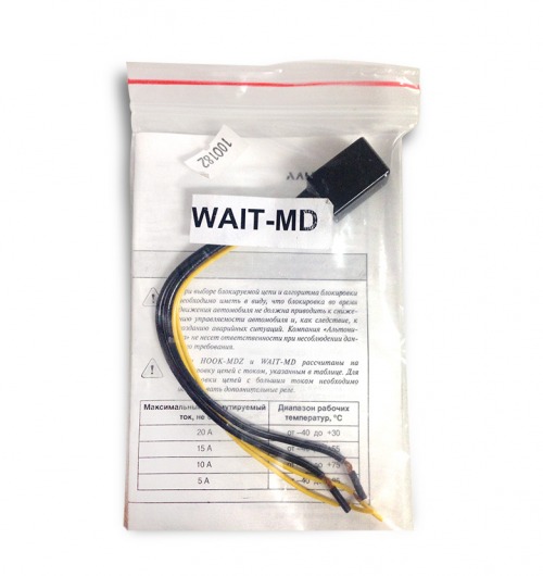 Wait-MD — это малогабаритное реле, которое оснащено нормально-замкнутыми контактами и динамическим кодированием управляющего сигнала. Так, блокировка включается в самом начале движения автомобиля, а выключается лишь через несколько секунд после полной остановки. При этом вы включаете или выключаете режим блокировки, осуществив необходимую команду блока иммобилайзера.
