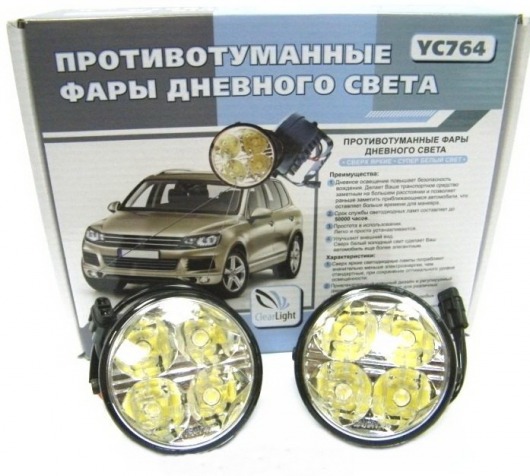Противотуманные фары дневного света ClearLight YC764 обеспечивают яркий свет, почти как солнечный. Представляют собой 2 блока фар с установленными в них мощными светодиодами дневного света. Каждый светодиод расположен в отдельном колодце с отражателем. Такая конструкция позволяет повысить интенсивность излучения и выделить ваш автомобиль при любых погодных условиях и в любое время суток.