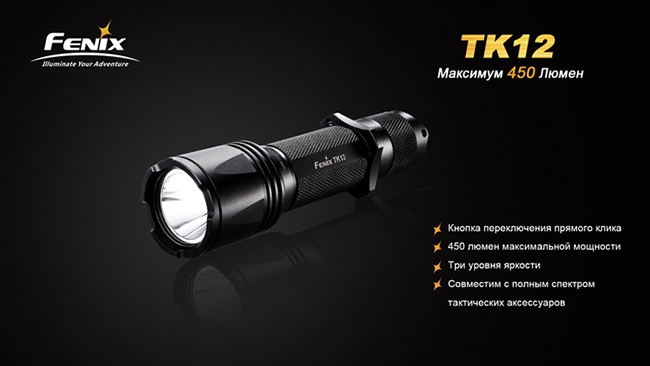 Тактический фонарь Fenix TK12 — современный фонарь с широким спектром возможностей — его можно использовать и в качстве ручного, и как подствольный. От предшественников модель отличается новым, усовершенствованным светодиодом XP-G2(U2), обеспечивающим более сконцентрированный и дальнобойный луч света.