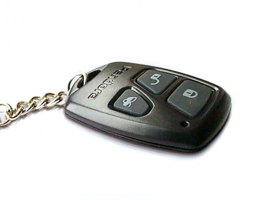 Второй брелок двусторонний и диалоговый, как и первый. Но он не имеет диспея, содержит 3 кнопки и поддерживает все команды управления.