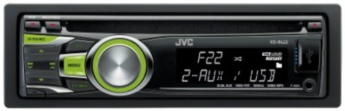 CD-ресивер JVC KD-422EY со съемной передней панелью и удобным расположением  USB-входа, предназначена для установки практически в любой автомобиль. Зеленая подсветка кнопок магнитолы не "режет" глаза, что позволяет избежать отвлекающих моментов во время вождения.