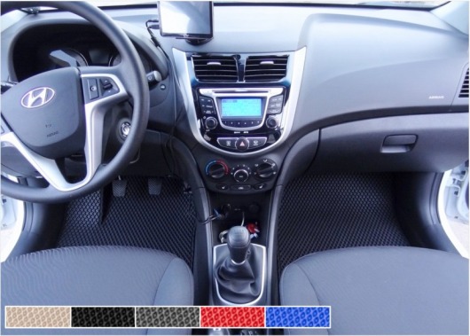 Коврики в салон – отличный способ защитить ваш автомобиль от грязи, а также придать салону действительно интересный внешний вид. Данный комплект ковров разработан специально для автомобилей Hyundai Solaris от 2011 г.в. А это значит, что автоковрики учитывают все особенности кузова Hyundai и без всякого подгона идеально ложатся на пол вашего авто.