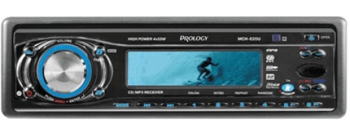 CD/MP3 ресивер Prology MCH-620U оснащен большим анимированным дисплеем, на который выводится не только основная информация, но и различные скрин-сейверы или просто часы. Крупный энкодер имеет резиновую окантовку, за счет чего обеспечивается дополнительный комфорт его использования. К тому же, устройство имеет встроенную память  1 Гб и возможность подключения к ней iPod.