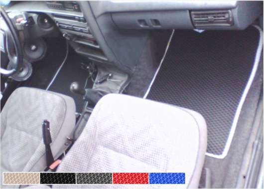 Мы предлагаем вам 25 вариантов цветового оформления салонных ковриков! Вы можете выбрать любой из 5 цветов фона ковра и сочетать его с любым из 5 цветов окантовки. При заказе просто отметьте желаемый цвет фона и канта в специальном поле над ценой.