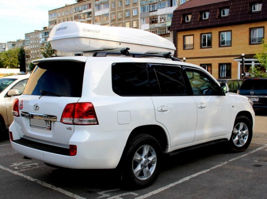 Обратите внимание! Сначала необходимо закрепить на крыше поперечины багажника, а потом уже на них ставится бокс. Если у вас нет поперечников, вы можете подобрать их для своей марки авто здесь.
