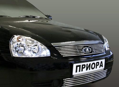 Тюнинг. Накладка на воздухозаборник Лада Приора, несмотря на небольшой размер, сделает «лицо» вашего автомобиля еще более стильным и привлекательным.