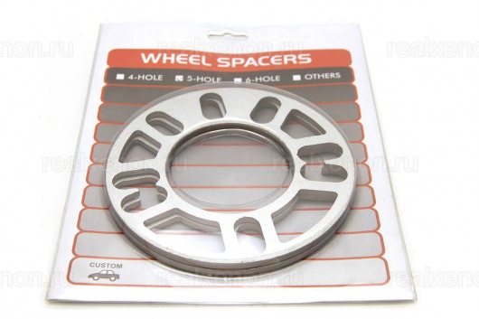 Данные колесные адаптеры изготовлены из высокопрочного алюминиевого сплава. Они универсальны и подходят любым автомобилям. Сквозные проставки толщиной 5 мм устанавливаются при помощи штатного крепежа, но в некоторых случаях штатные болты придется заменить на более длинные.