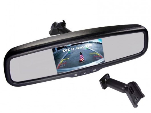 Зеркало заднего вида с монитором и крепежом для Toyota без проблем устанавливается на место штатного салонного зеркала, сильно расширяя его функциональность. Устройство снабжено большим экраном, который автоматически включается, если вы даёте задний ход. Если подключить к зеркалу с монитором камеру заднего вида, вы увидите на экране всё, что она снимает. Для установки данной модели нужно полностью снять заводское зеркало. Размер экрана – 5 дюймов.
