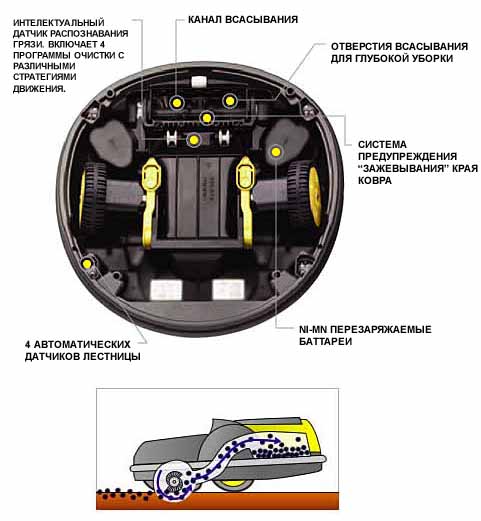 Универсальный пылесос-робот Керхер RC3000 Robo Cleaner мгновенно оценивает обстановку, сканирует площадь уборки, потом – проанализирует степень загрязнения, выбрав нужную программу очистки. После этого «умный» пылесос соберет часть мусора, отвезет на свою базу, очистит мусоросборник и продолжит работу до тех пор, пока ваш дом не станет кристально чистым.