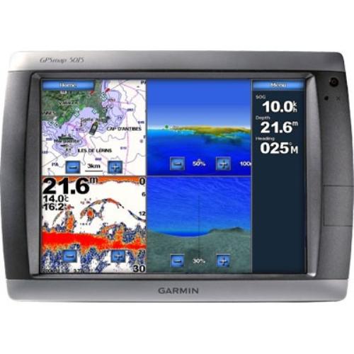 Морской навигатор Garmin GPSMAP 5015w GPS 17x NMEA 2000 - это довольно внушительный картплоттер, который управляется при помощи сенсорного экрана. В прибор уже загружена спутниковая карта мира, которая способна предоставить довольно подробную навигационную информацию. К тому же, вы можете добавить различные дополнительные устройства - эхолот, радар или приемник метеосводок.