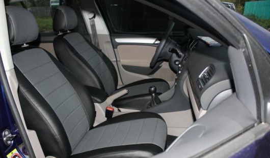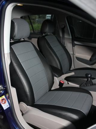 Вопросы и отзывы про Чехлы автомобильные для Volkswagen Jetta 04-11 г.в. (черно-темно-серые, экокожа)