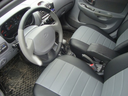 Чехлы автомобильные для Hyundai Accent, седан от 08 г.в. (черно-светло-серые, экокожа)