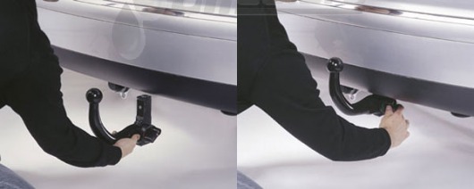 Тип фаркопа: быстросъемный (автоматический горизонтальный шар). Шар устанавливается без особых усилий, есть специальный замок, который препятствует краже, и оптический контроль блокировки.