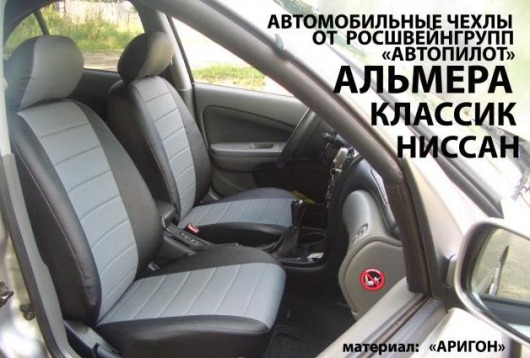 Оригинальные чехлы для Ниссан Альмера Классик сделаны из экокожи Аригон —  экологически чистого и сертифицированного материала. Авточехлы из экокожи не вызывают аллергию, устойчивы к перепадам температур и не пропускают жидкость.