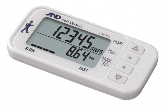 Педометр AnD UW-101 не только подсчитывает количество сделанных вами шагов, но и измеряет пройденное расстояние и потраченные калории.
