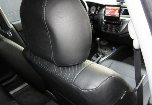 Вопросы и отзывы про Чехлы автомобильные для Mitsubishi Lancer IX, седан/универсал, от 03 г.в. (черные, экокожа)