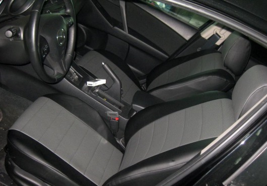 Автомобильные модельные чехлы для Mazda 3, седан/хэтчбек 2003-2009 г.в. (черно-темно-серого цвета) полностью повторяют контуры штатной обивки сидений. Вы можете быть уверены, что такие чехлы на сидения не потеряют форму даже спустя многие годы использования. Модельные чехлы "Автопилот" допускают использование штатного подогрева сидений, а также подходят сидениям с подушкой безопасности.