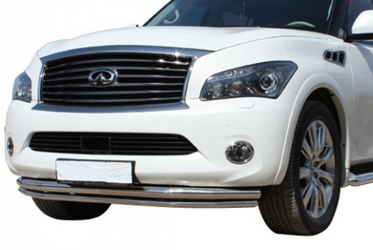 Защита воздухозаборника (хром) для Infiniti QX56 — это декоративная накладка на воздухозаборник, которая защищает систему отопления и вентиляции автомобиля от мусора, грязи, снега, дождя и т.д. – всего, что может повредить фильтр воздухозаборника. Данная модель подходит для автомобилей Infiniti QX56 от 2011 г.в. Изготовлен декоративный элемент воздухозаборника из нержавеющей стали и представляет собой 1 элемент из трубок диаметром 10 мм.