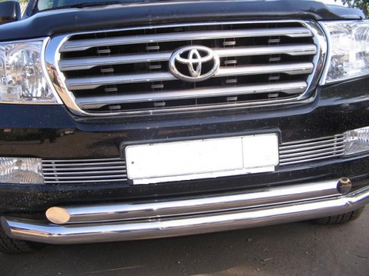 Защита воздухозаборника для Toyota LC 200 — это декоративная накладка на воздухозаборник, которая защищает систему отопления и вентиляции автомобиля от мусора, грязи, снега, дождя и т.д. – всего, что может повредить фильтр воздухозаборника. Данная модель подходит для автомобилей Toyota LC 200 от 2009 г.в. Изготовлен декоративный элемент воздухозаборника из нержавеющей стали и представляет собой 2 элемента из 6 трубок диаметром 10 мм.