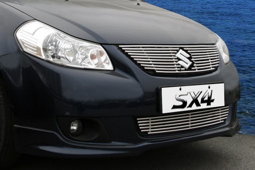 Тюнинг. Накладка на воздухозаборник Сузуки СХ4, несмотря на небольшой размер, сделает «лицо» вашего автомобиля еще более стильным и привлекательным, особенно в сочетании с накладками на радиатор для Suzuki SX4.