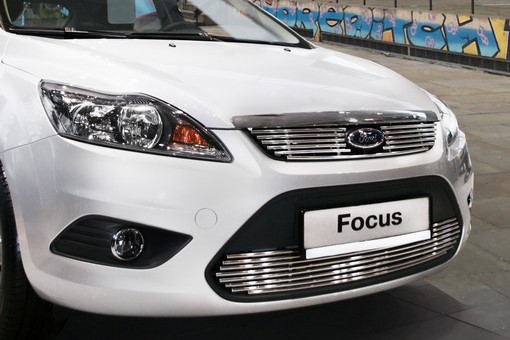 • Тюнинг. Накладка на воздухозаборник Форд Фокус, несмотря на небольшой размер, сделает «лицо» вашего автомобиля еще более стильным и привлекательным., особенно в сочетании с накладкой на решетку радиатора Ford Focus.