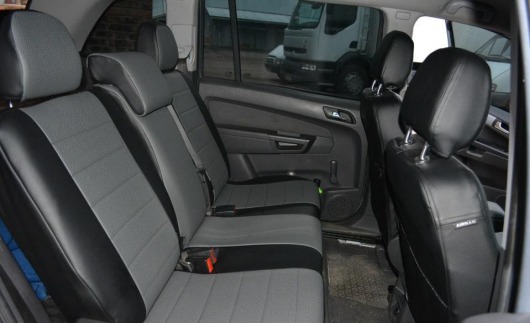 Вопросы и отзывы про Чехлы автомобильные для Opel Zafira B 05-12 г.в. (черно-темно-серые, экокожа)