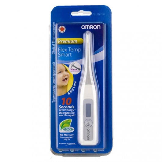 Цифровой термометр Omron Flex Temp Smart управляется всего 1 кнопкой, а звуковой сигнал оповещает вас об окончании измерения. Дополнительным приемуществом является память на последнее измерение, благодаря чему, вы можете отследить протекание болезни. Также электротермометр Flex Temp Smart оснащен функцией автоотключения для экономного расхода ресурсов.