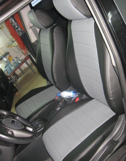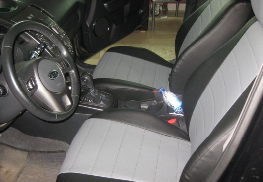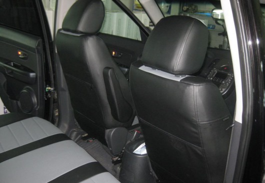 Вопросы и отзывы про Чехлы автомобильные для Kia Soul (черно-светло-серые, экокожа)