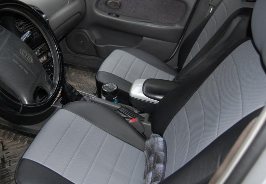 Автомобильные модельные чехлы для Kia Spectra, седан (черно-светло-серого цвета) полностью повторяют контуры штатной обивки сидений. Вы можете быть уверены, что такие чехлы на сидения не потеряют форму даже спустя многие годы использования. Модельные чехлы "Автопилот" допускают использование штатного подогрева сидений, а также подходят сидениям с подушкой безопасности.