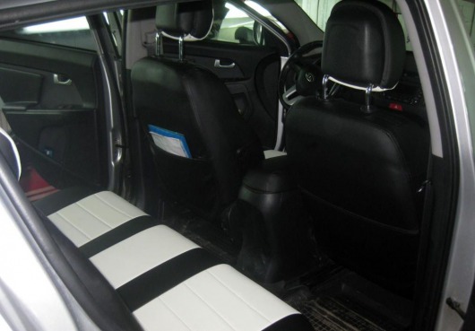 Вопросы и отзывы про Чехлы автомобильные для Kia Sportage III от 10 г.в. (черно-белые, экокожа)