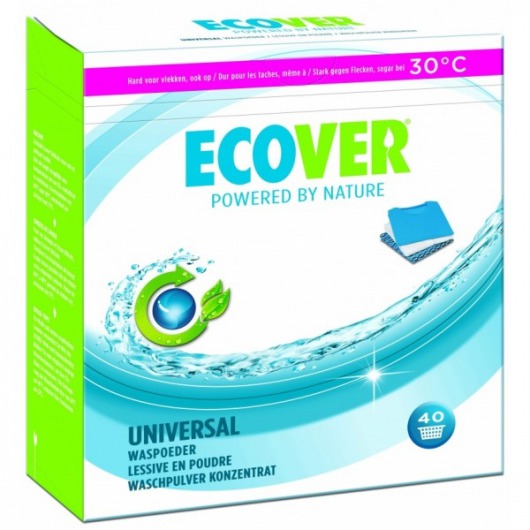 • Стиральный порошок ECOVER  полностью биоразлагаем, вода после использования подходит для  полива растений.