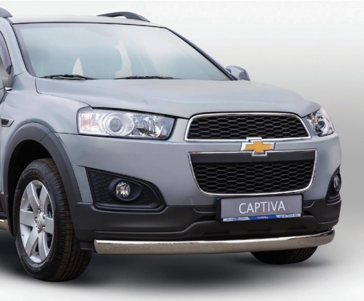 Труба на бампер Chevrolet Captiva от 2014 г.в. защищает передний бампер автомобиля от различных механических повреждений при мелких ДТП и неудачных парковках, а также незаменима при езде по бездорожью. А кроме этого, труба на передний бампер Шевроле Каптива смотрится очень стильно и эффектно.