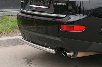 Труба на задний бампер Citroen C-Crosser защищает задний бампер автомобиля от различных механических повреждений при столкновениях на дороге и неудачных парковках. А кроме этого, защита заднего бампера для Ситроен Ц-Кроссер — это дополнительная деталь тюнинга.