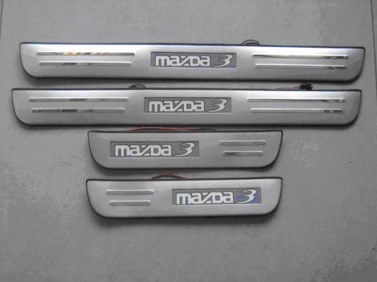 Светящиеся накладки на пороги Mazda 3 не входят ни в одну комплектацию этой модели автомобиля. Они позволят вам сделать свой автомобиль еще более оригинальным и стильным. Каждое открытие двери будет сопровождаться теплым синим или красным светом.