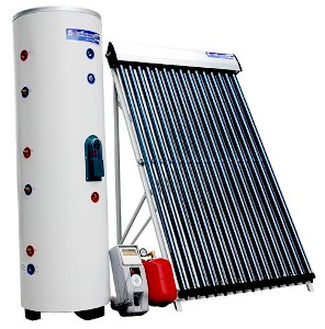 Коллектор поглощает солнечную энергию и передает ее в бак-аккумулятор посредством принудительной циркуляции теплоносителя в солнечном контуре. В системах с принудительной циркуляцией в коллекторный контур включается циркуляционный насос, что дает возможность устанавливать водобак-аккумулятор в любой части здания. Направление движения теплоносителя должно совпадать с направлением естественной циркуляции в коллекторах. Включение и выключение насоса производится электронным блоком управления, представляющим собой дифференциальное управляющее реле, сравнивающего показания датчиков температуры, установленных на выходе из коллекторов и в баке. Насос включается, если температура в коллекторах выше температуры воды в баке.