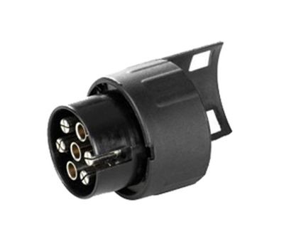 Адаптер-переходник с 7 контактов на 13 контактов. Обеспечивает связь между фаркопом с 7-контактной розеткой и прицепом с 13-контактным штеккером (разъемом).