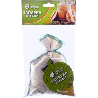 Банная запарка "Эвкалипт" — это сбор на основе листьев эвкалипта в льняном мешочке. Обладает преклрасным ароматом и антисептическимим свойствами. Настой из листьев эвкалипта помогает облегчить симптомы ангины, боли в мышцах и суставах. Запарку можно использовать при ушибах и невралгии.