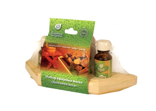 Набор эфирных масел Банные штучки "Дыхание леса" (4 флакона на деревянной полочке)