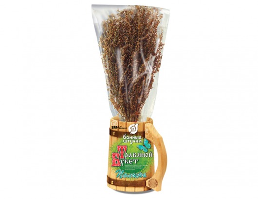 Травяной букет Полынь для бани предназначен для использования в бане и сауне (при запаривании веников). Также настой из травы полыни можно лить на камни, лавки и полки. Трава полыни дезинфицирует воздух в помещении, обладает противовоспалительным действием, повышает тонус кожи. В полыни содержатся эфирные масла, смолистые, горькие, дубильные вещества, витамины, минеральные элементы. Для создания в бане душистого аромата свежескошенного луга подвесьте букет в парной и периодически смачивайте водой.