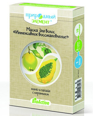 Маска для волос «Интенсивное восстановление» (манго и папайя с кератином) воздействует на повреждённые волосы, улучшает их структуру. После применения маски ускоряется обмен веществ, прекращается выпадение волос. Волосы приобретают объём, здоровый блеск и нежную шелковистость.