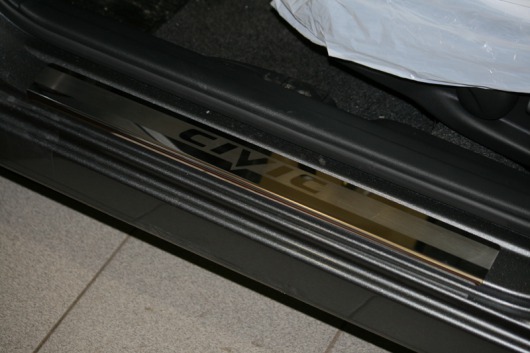 Накладки на пороги дверей Honda Civic не только обеспечивают защиту верхней и боковой поверхности внутреннего порога, но и отлично вписываются в интерьер автомобиля, подчеркивая его стиль и индивидуальность. C монтажом проблем не возникнет: установка накладок на внутренний порог для Honda Civic производится на штатные места с помощью скотча 3M.