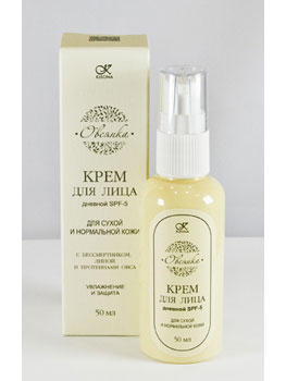 Увлажняющий крем для ежедневного ухода за нормальной и сухой кожей лица. Протеины овса и натуральный полисахаридный комплекс обеспечивают длительное увлажнение кожи. Экстракты бессмертника, липы и календулы успокоят чувствительную и раздраженную кожу, придадут лицу свежий и ухоженный вид, защитят кожу от УФ-излучения и неблагоприятного воздействия окружающей среды. Крем имеет легкую текстуру, быстро впитывается. Является прекрасной основой под макияж. Изготовлен из продуктов растительного происхождения. Не содержит продуктов животного происхождения, не содержит продуктов переработки нефти, не содержит синтетических эмульгаторов, не содержит синтетических отдушек и красителей. Содержит консерванты, разрешенные стандартом ECOSEPT к применению в натуральной косметике.
