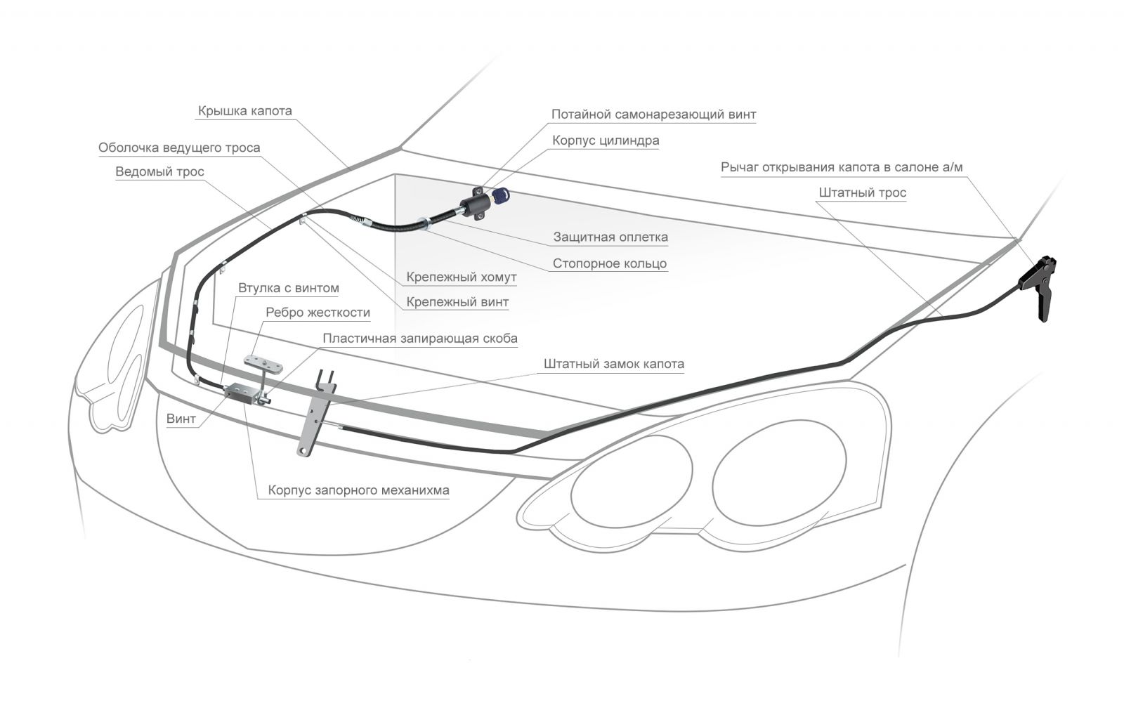 Механический замок капота Fortus Hood Lock Classic mini защищает ваш автомобиль от угона. Противоугонное устройство - эта система блокировки, которая управляет запорным механизмом с помощью специального троса с гибким корпусом.