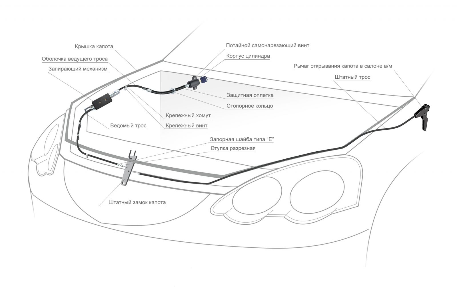 Механический замок капота Fortus Hood Lock "в противоход" защищает ваш автомобиль от угона. Противоугонное устройство - эта система блокировки, которая управляет запорным механизмом с помощью специального троса с гибким корпусом.