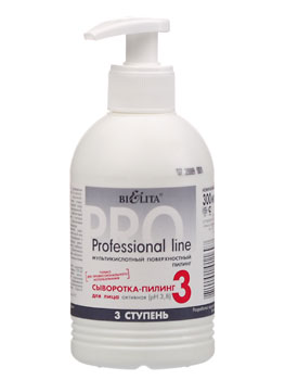Активная сыворотка для проведения пилинга Professional Line содержит комплекс из 3-х кислот: гликолевой, молочной, лимонной. Выравнивает поверхность кожи, стимулирует обновление клеток, делает кожу гладкой, упругой и увлажненной. Оказывает выраженный лифтинговый эффект. Гиалуронат натрия и хитозан смягчают действия кислот, обеспечивая безопасность и комфорт процедуры.