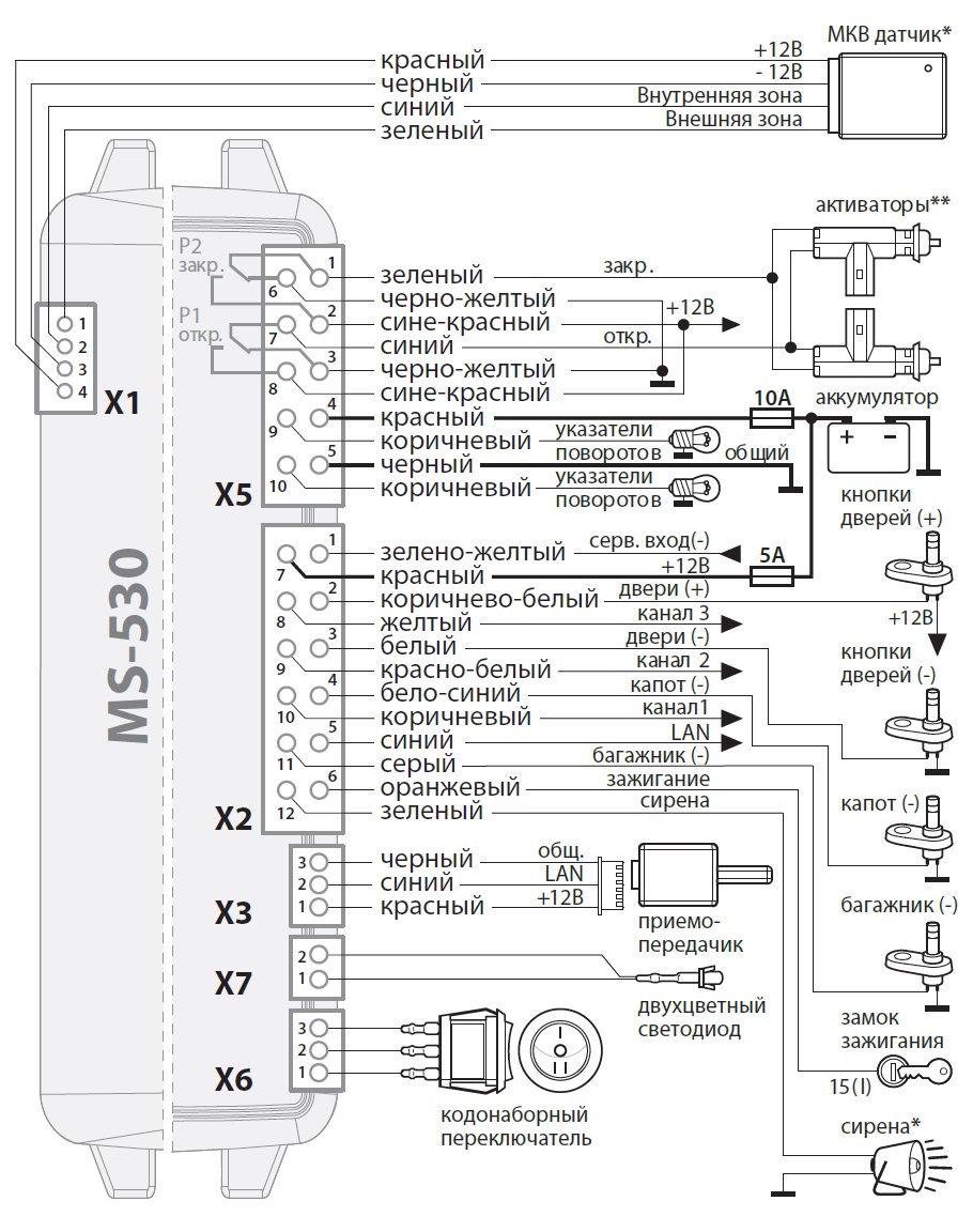Автосигнализация MS-530 – охранно-противоугонное устройство с двусторонней связью и возможностью автозапуска двигателя. Имеет в своем арсенале цифровую шину LAN, с помощью которой вы можете существенно расширить охранные возможности системы.