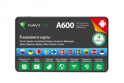Портативный автомобильный gps навигатор Navitel A600 имеет емкостный 6-дюймовый экран, FM-трансмиттер, поддерживает навигационное программное обеспечение — Навител 7.5 и предустановленные карты России, Украины, Республики Беларусь, Казахстана, Финляндии и других стран Европы.