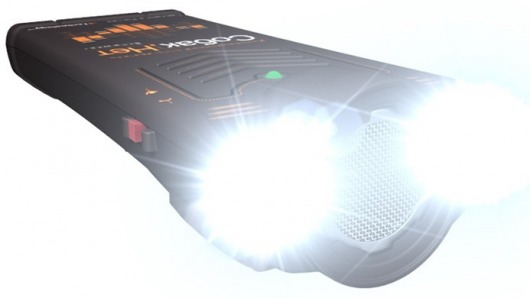 • В режим сверхъяркого фонарика прибор переводится при помощи переключателя на правой боковой стороне корпуса. Два сверхъярких светодиода дают достаточно света, чтобы вы могли, к примеру, уверенно найти дорогу в темноте или открыть замок гаража.