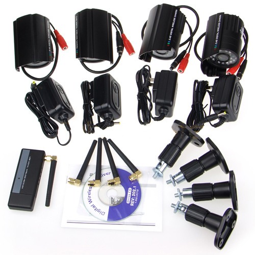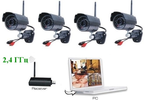 • 4 беспроводные цветные камеры с блоками питания для каждой