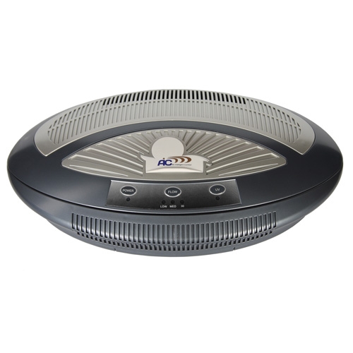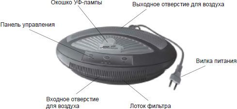 Очиститель воздуха AIC XJ-2200 выполнен в виде летающей тарелки. Ультрафиолетовая лампа подсвечивает прибор вокруг синим свечением. Кстати, совершенно безопасным для человека: свет проходит через специальное окошко из материала, который поглощает УФ излучение.